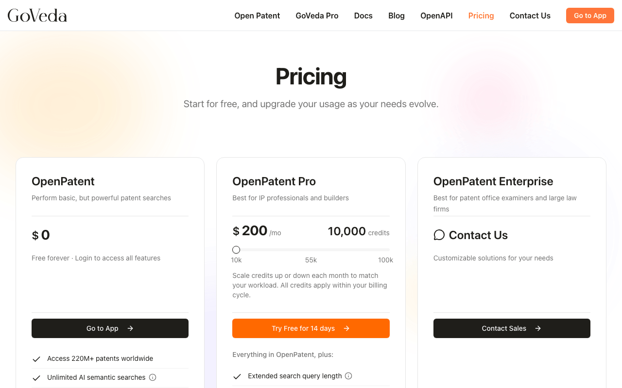 The OpenPatent Pro free trial gives you 14 days of full Pro access.