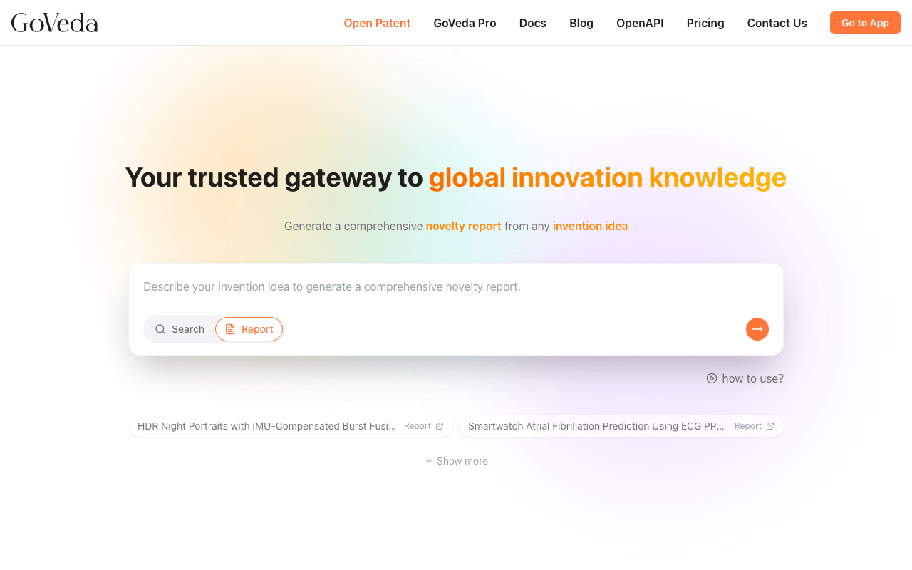 Credits are included with Pro subscriptions. Without a Pro subscription, GoVeda generates the report but shows only the first prior art finding. The rest is blurred until you unlock the full report.
