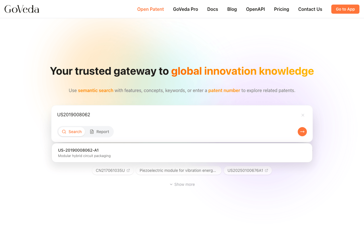 Type a patent number. GoVeda detects patent number format automatically.